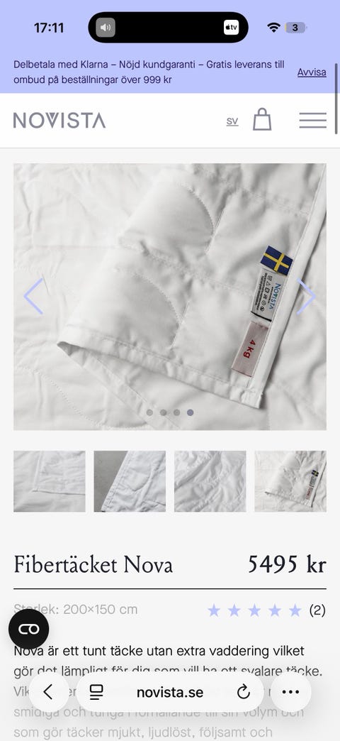 12 kg tyngdtäcke från Novista