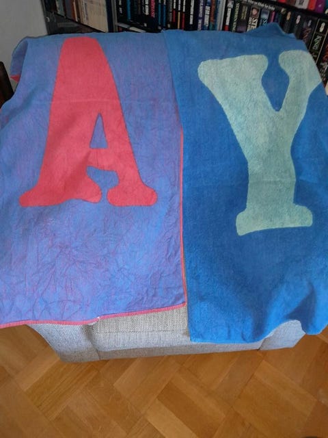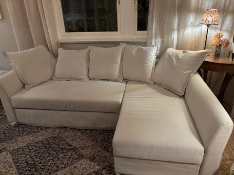 Hörnsoffa i tyg bortskänkes
