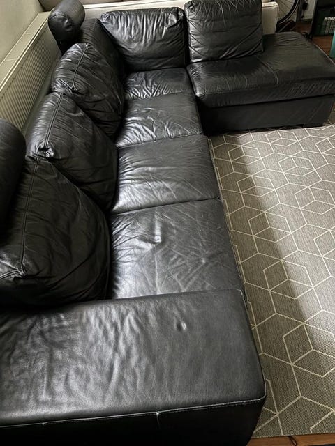 Svart skinnsoffa