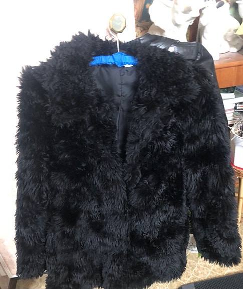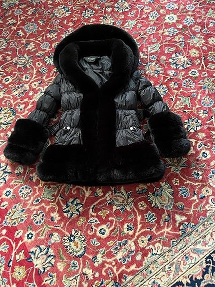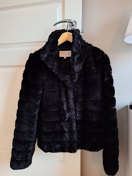 Snygg svart glansig vinterjacka m fuskpälskrage