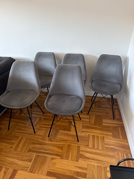 5st stolar, i grå sammetsklätt