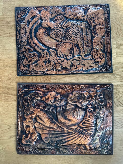 Tredelad tavla i metall