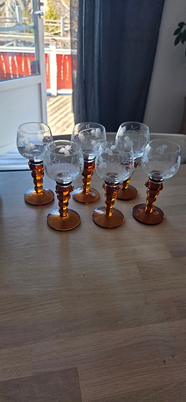 Okänd tillverkare glas med bärnstensfärgad fot och slipad dekor 6-pack