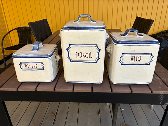 Keramikburkar med lock för pasta ris mjöl vit blå