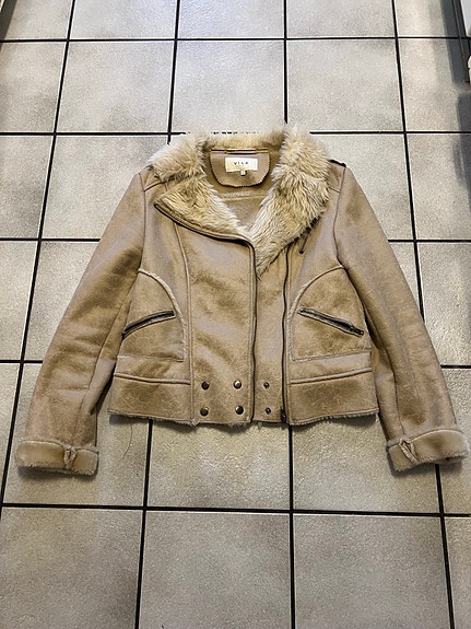 Beige pälsjacka från VILA, storlek L