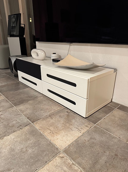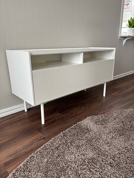 Tv-bänk vit med 4 lådor.