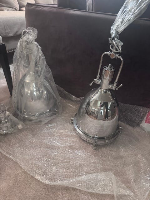 Unik taklampa av flätad ståltråd