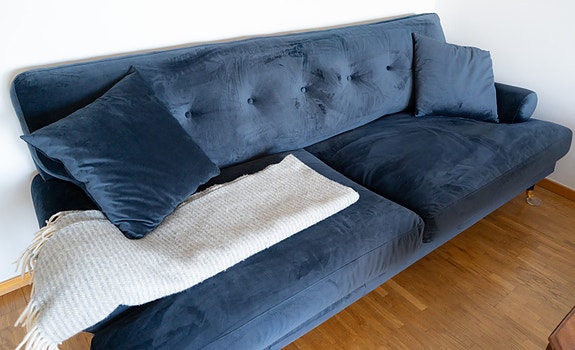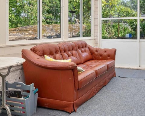 Soffa med trasig klädsel