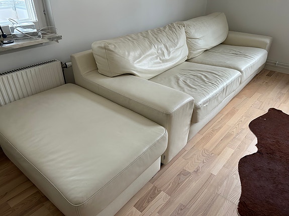 Läder soffa med pall vit