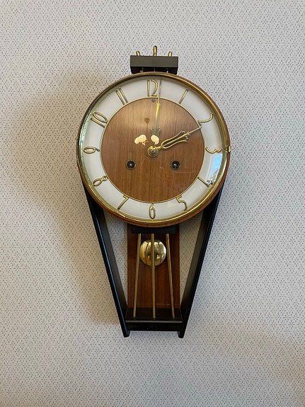 Väggklocka pendyl trä och metall