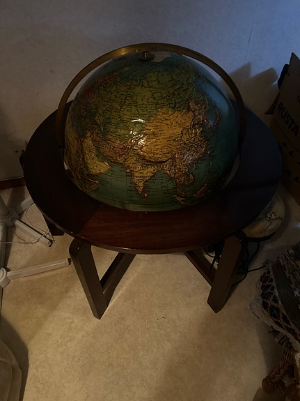 Jordglob på trästativ grön flerfärgad