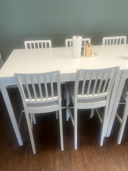 Matgrupp barbord med stolar vit