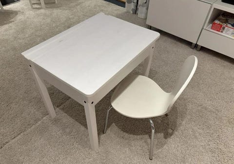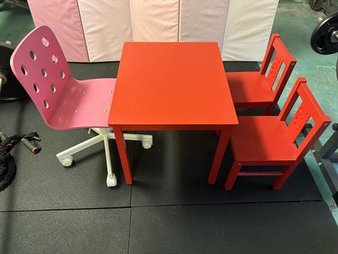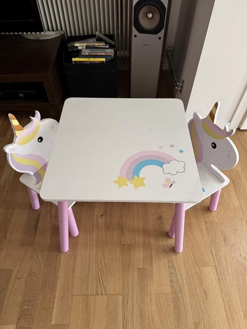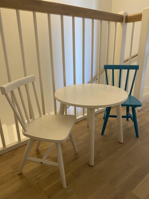 Barn bord och två stolar
