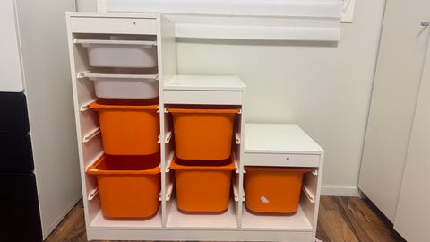 Köp fler korgar till förvaring och namnge dem tillsammans med barnet