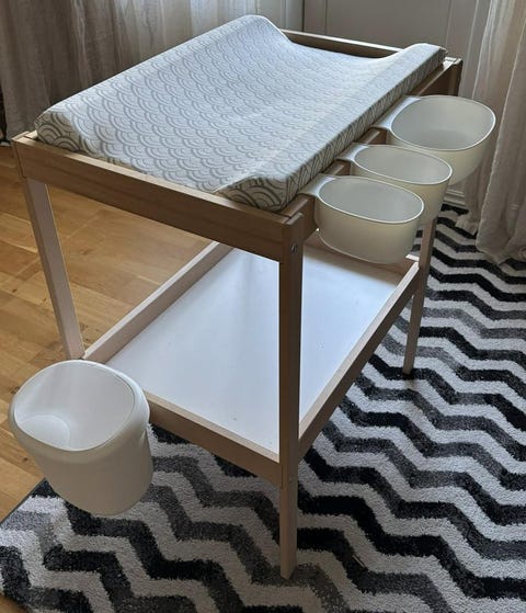 Ett skötbord är en praktisk plats för att byta blöja på din bebis. Ofta har skötbordet lådor eller korgar där du enkelt kan förvara det du behöver vid blöjbytet. Om du funderar på ett alternativ till skötbord kan ett skötunderlägg som placeras ovanpå en byrå eller tvättmaskin vara ett smart val för ditt hem och dina behov. När du tittar på begagnade skötbord är det viktigt att kontrollera möbelns höjd i annonsern så att det passar flera personer som ska byta blöja.