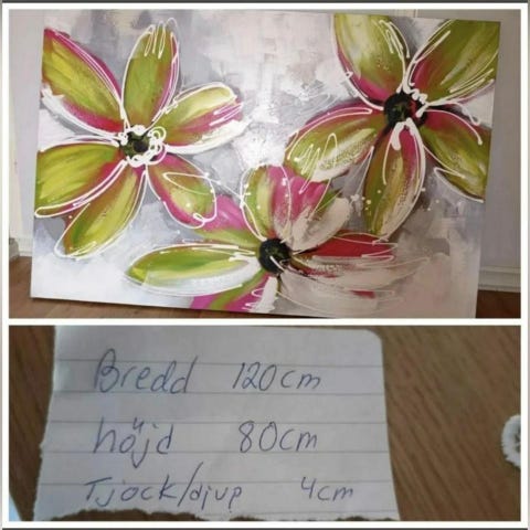Akrylmålningar kan täcka alla genrer och stilar. De kan smälta in harmoniskt i din inredning eller bli en personlig och intressant detalj i ditt hem. Med akrylmålningar kan du enkelt ge ditt hem en personlig touch. När du säljer en akrylmålning är det bra att ange målningens ursprung och tillverkningsår i annonsen om du känner till dem – det är information som många köpare är intresserade av.