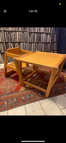 Äldre matstol barn trä