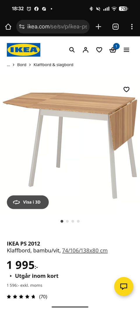 uppfällbart bord