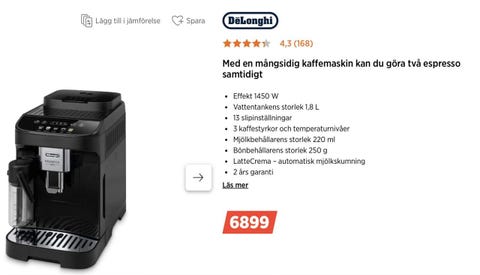 3 500 krDelonghi la specialistaHägersten12 novGratis frakt•Köp nuLastbil i rörelseKan skickasLägg till i favoriter.