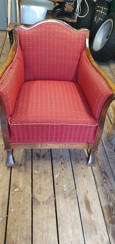 Fåtölj bortskänkes, behöver ny klädsel