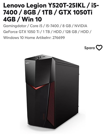3 000 krLenovo Legion T530 – GTX 1060 / 8GB RAM / 512GB SSD – Fabriksåterställd LenovoÅkersberga2 marLägg till i favoriter.