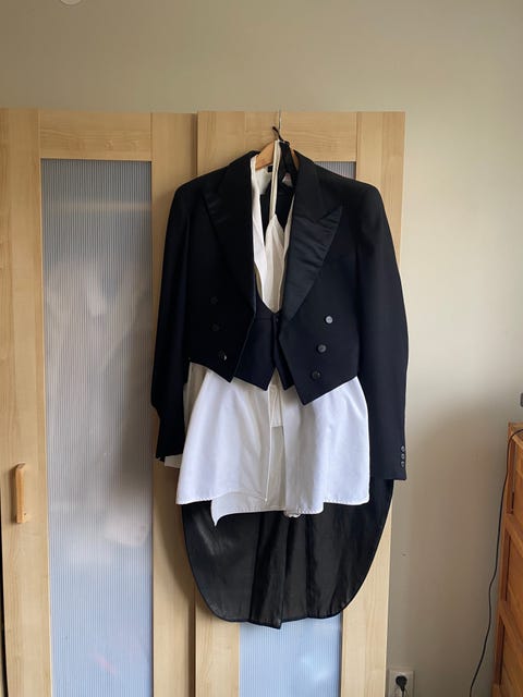 800 krFrack svart ull storlek 50 (Kabom), skjorta (Cavaliere), byxa, väst och fluga.Stl. 50Lund1 dagLägg till i favoriter.