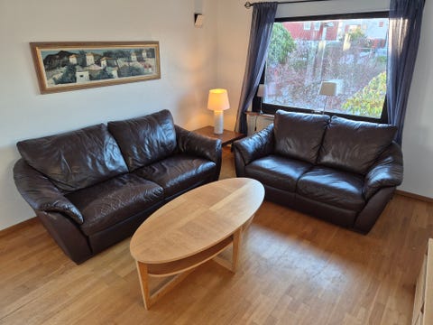 IKEA-fåtölj med fotpall