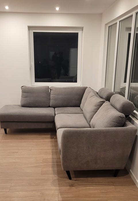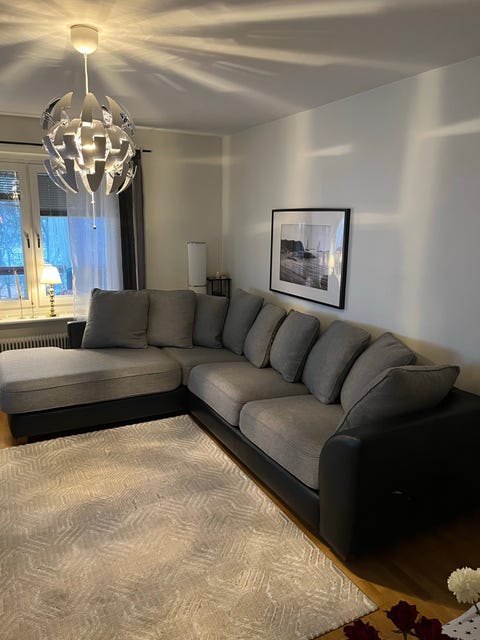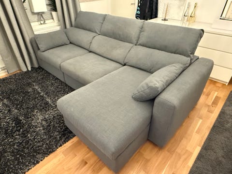 Hörnsoffa i ljusgrå tyg