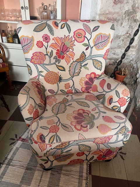 Skön fåtölj i öronlappsmodell
