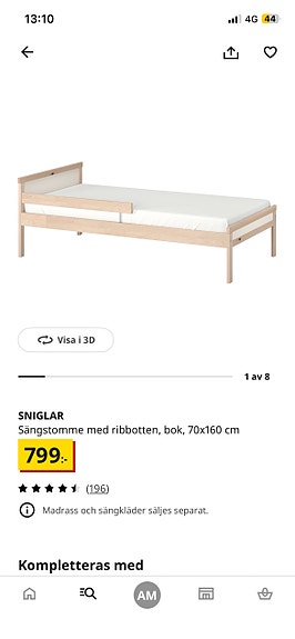 900 kr2 IKEA SNIGLAR sängstomme och UNDERLIG skummadrass 70x160 cm IKEAJärfälla18 marLägg till i favoriter.Öppna annons