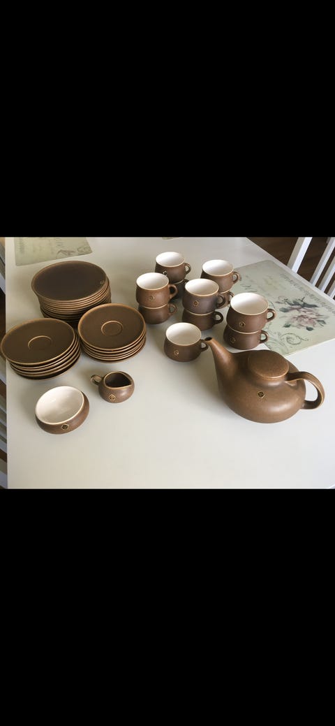 Porslin servis med gulddetaljer