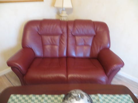Röd lädersoffa tvåsits