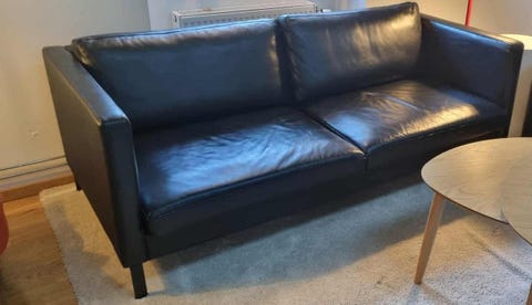 Svart lädersoffa 3-sits
