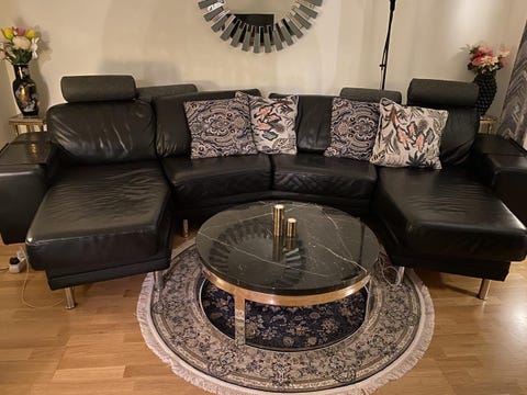 Svart lädersoffa