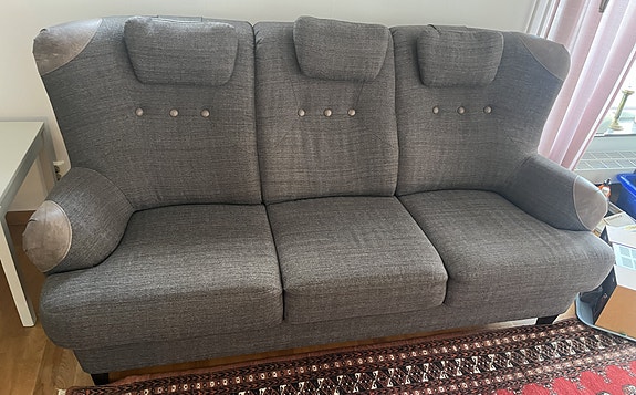 Soffa 3-sits grå tyg