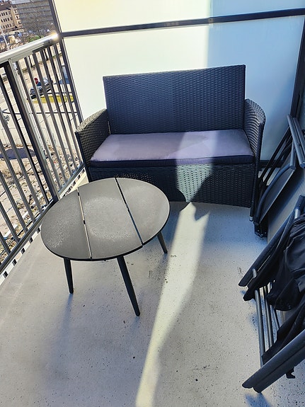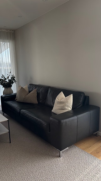 Svart tresittsig soffa