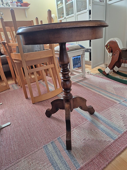 Runt sidobord i mörkt trä