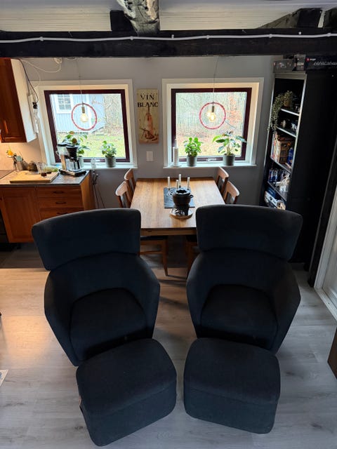 Fåtöljer, fotpall.