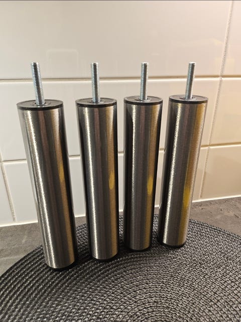 Sängben i borstat stål