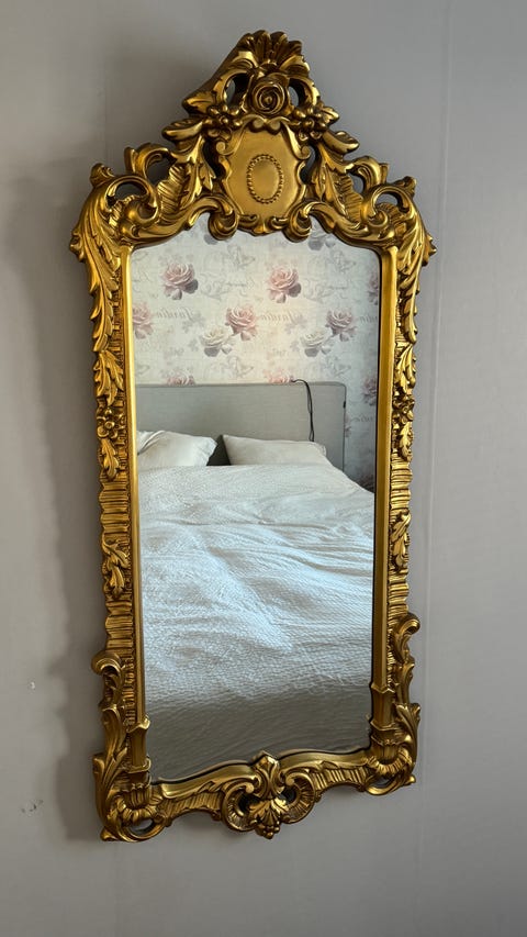 Spegel med tunn guldram