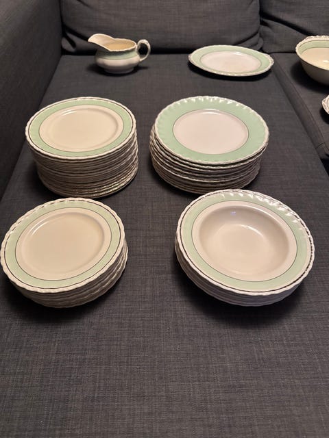 5 500 krEngelsk vintage servis – Grindley, ca 1940-tal – grön/vitSegeltorp24 janLägg till i favoriter.