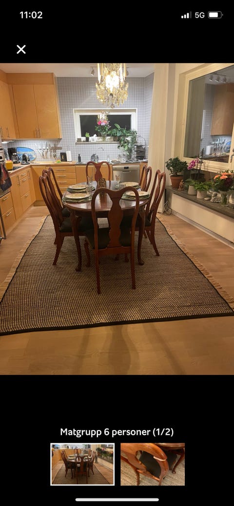 Antik Matgrupp 5-6 stolar teak