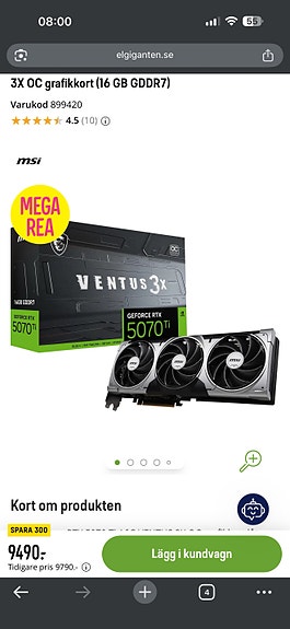 9 999 krSäljer/Byter MSI RTX 5070 Ti Ventus 3X mot RTX 5080Hisings Backa6 aprKöp nuLastbil i rörelseKan skickasLägg till i favoriter.