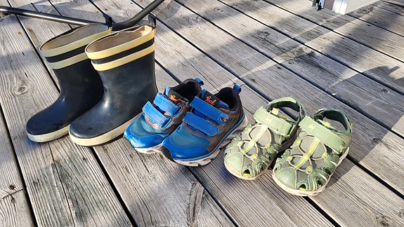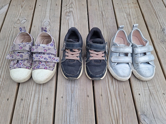 Kvalitetsskor kan vara ganska dyra. Genom att köpa begagnade kan du till exempel få vinterstövlar till ett lägre pris, och kanske till och med ett extra par för de morgnar då stövlarna inte hunnit torka efter lek i snön. Mellansäsongsskor, barnsneakers och gummistövlar blir snabbt för små när barnen växer. Om du planerar att köpa begagnade barnskor - kontrollera skornas skick i annonsen och kolla storlekstabellen på tillverkarens hemsida.