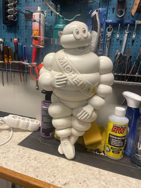 Två Michelin äldre modell gubbar