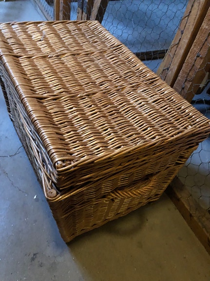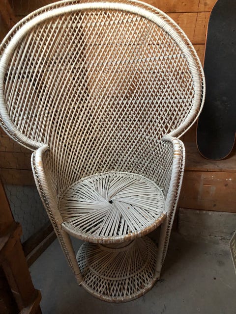Påfågelfotölj i korg