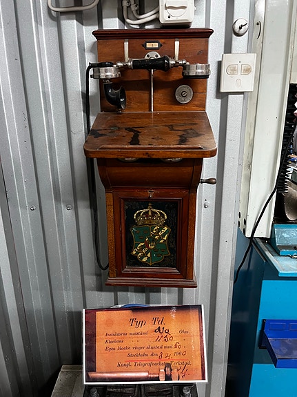 Viktoria väggtelefon trä årsmodell 1900