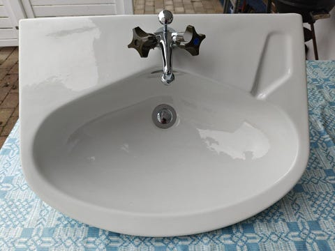 Handfat med blandare i perfekt storlek och stil kan hittas begagnat
