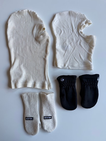 Baklavas i silke, ullvantar samt vantar från Hestra.