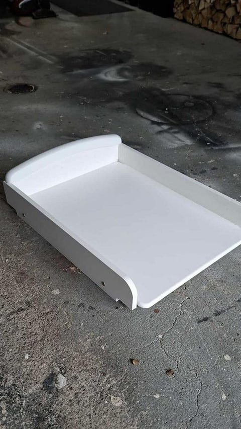 Vitt skötbord i plast.